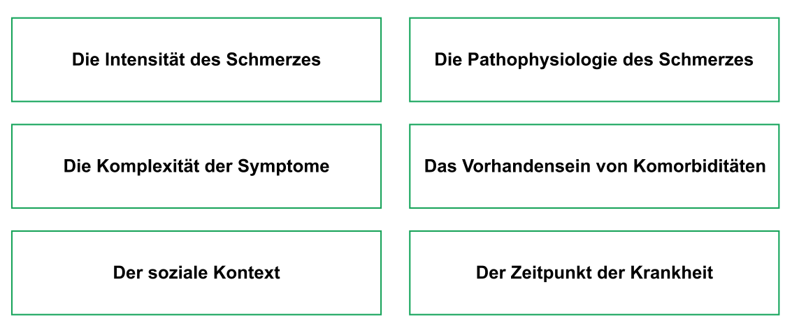 Die multifaktorielle Natur chronischer Schmerzen erfordert ein wirksames Schmerzmanagement, das bei der Wahl einer gezielten Behandlung die zugrunde liegenden Schmerzmechanismen berücksichtigt. Pharmakologische Behandlungen sollten versuchen, nichtpharmakologische Therapien zu ergänzen, nicht zu ersetzen. Dies ist von besonderer Bedeutung bei Zuständen mit einer neuropathischen Komponente, da deren Vorhandensein aufgrund einer Sensibilisierung mit einer erhöhten Schwere und Dauer der Schmerzen verbunden ist.3